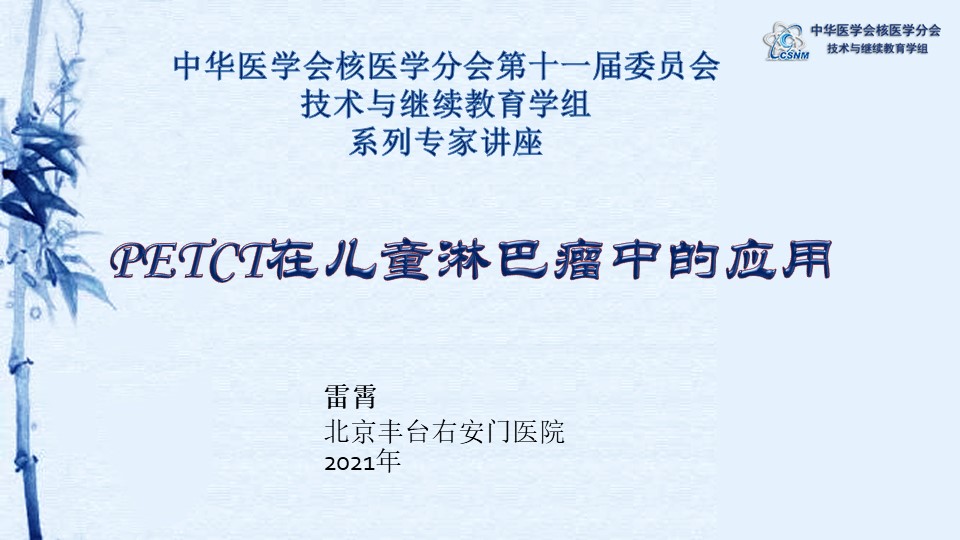 講座93:PETCT在兒童淋巴瘤中的應用-雷霄